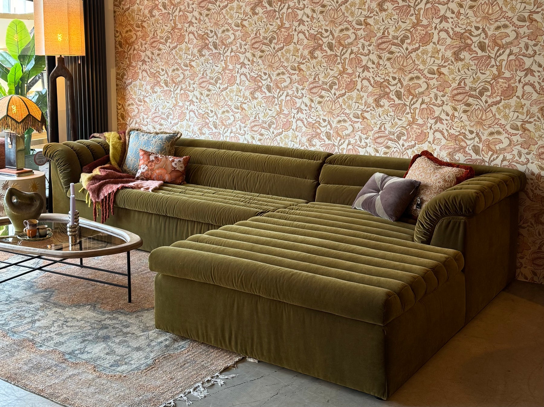 De bank is helemaal naar wens samen te stellen. We hebben meerdere elementen waar je uit kunt kiezen om zo jouw ideale bank te creëren. Op het productblad zijn alle mogelijkheden te vinden. Op de foto zie je 3-zits arm links + Divan Small R (325cm breed)
