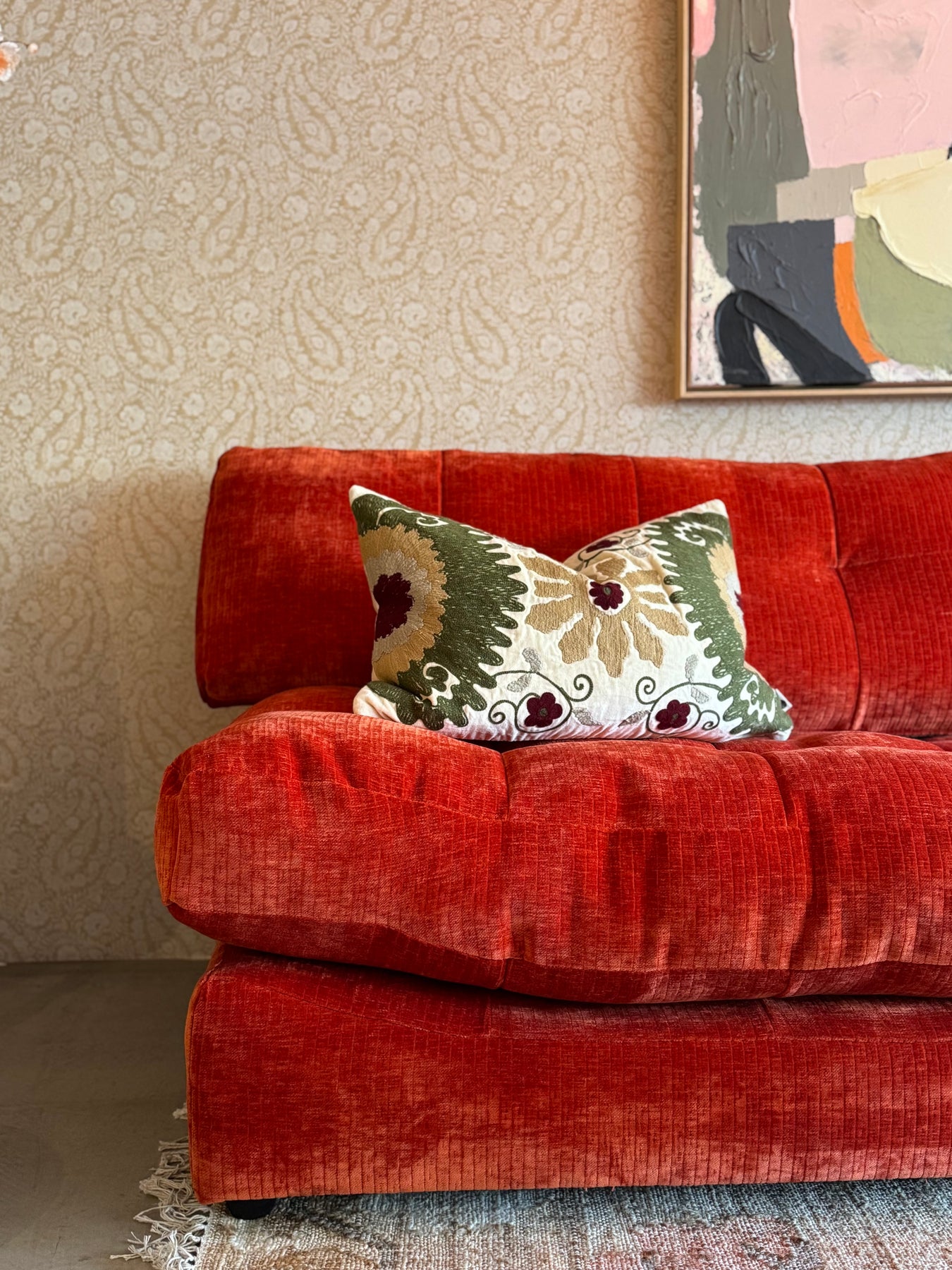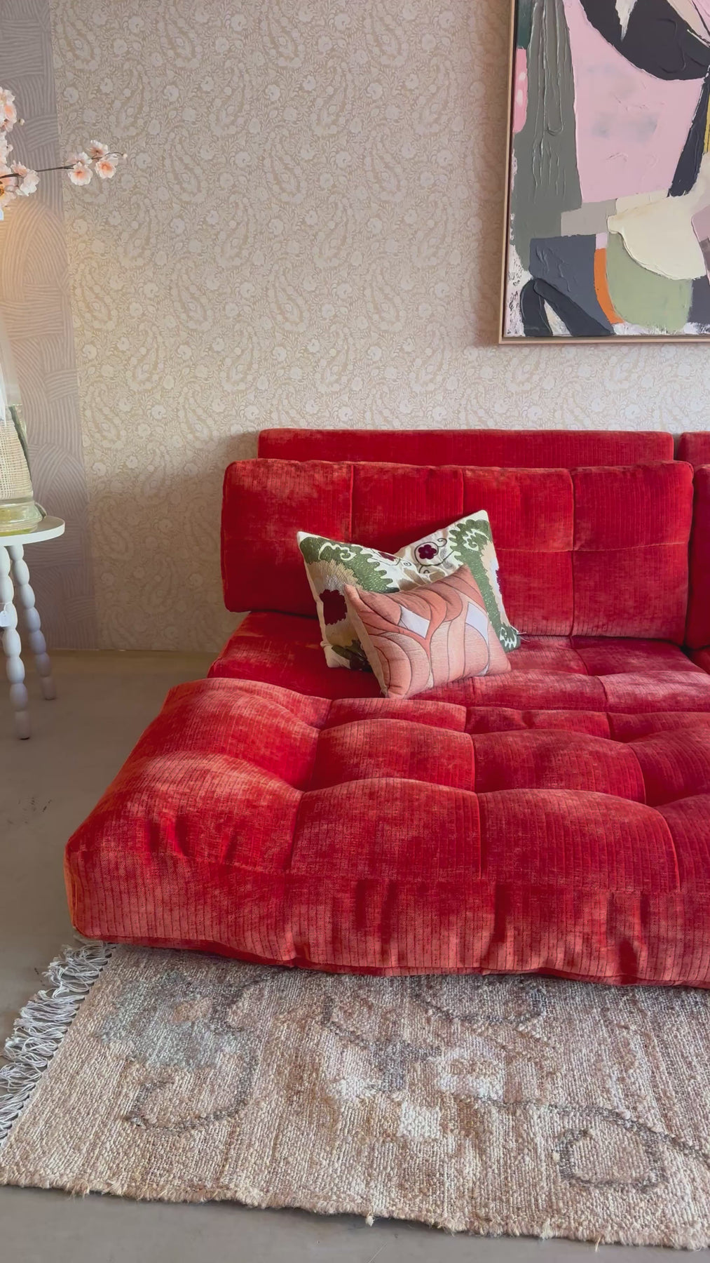 De Elias bank is een zeer comfortabele bank waar je heerlijk in kan ploffen. De extra feature van deze bank is dat je de zitkussens voor de bank kan leggen zodat er een grote chill plek of zelfs slaap plek ontstaat! De retro geïnspireerde bank heeft een speels design en geeft je woonkamer een toffe jaren ‘70 vibe. De bank heeft geen standaard armleuningen maar een verhoging in de zitting.