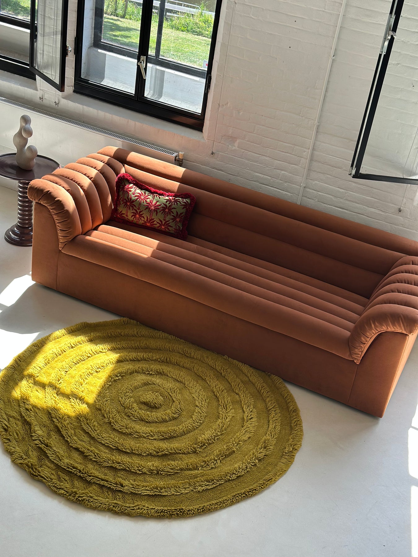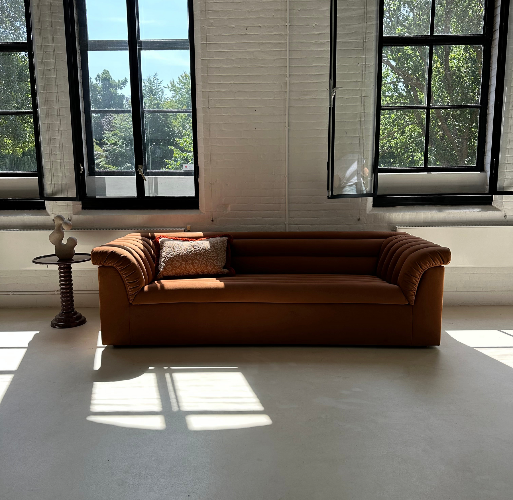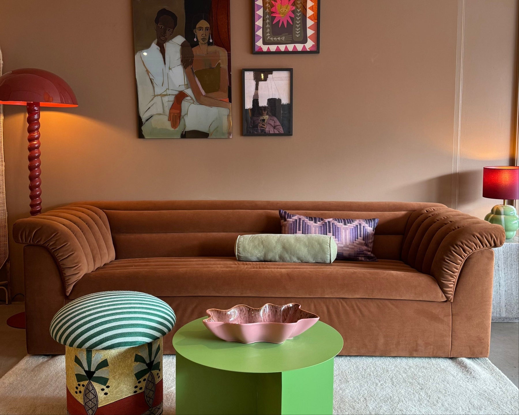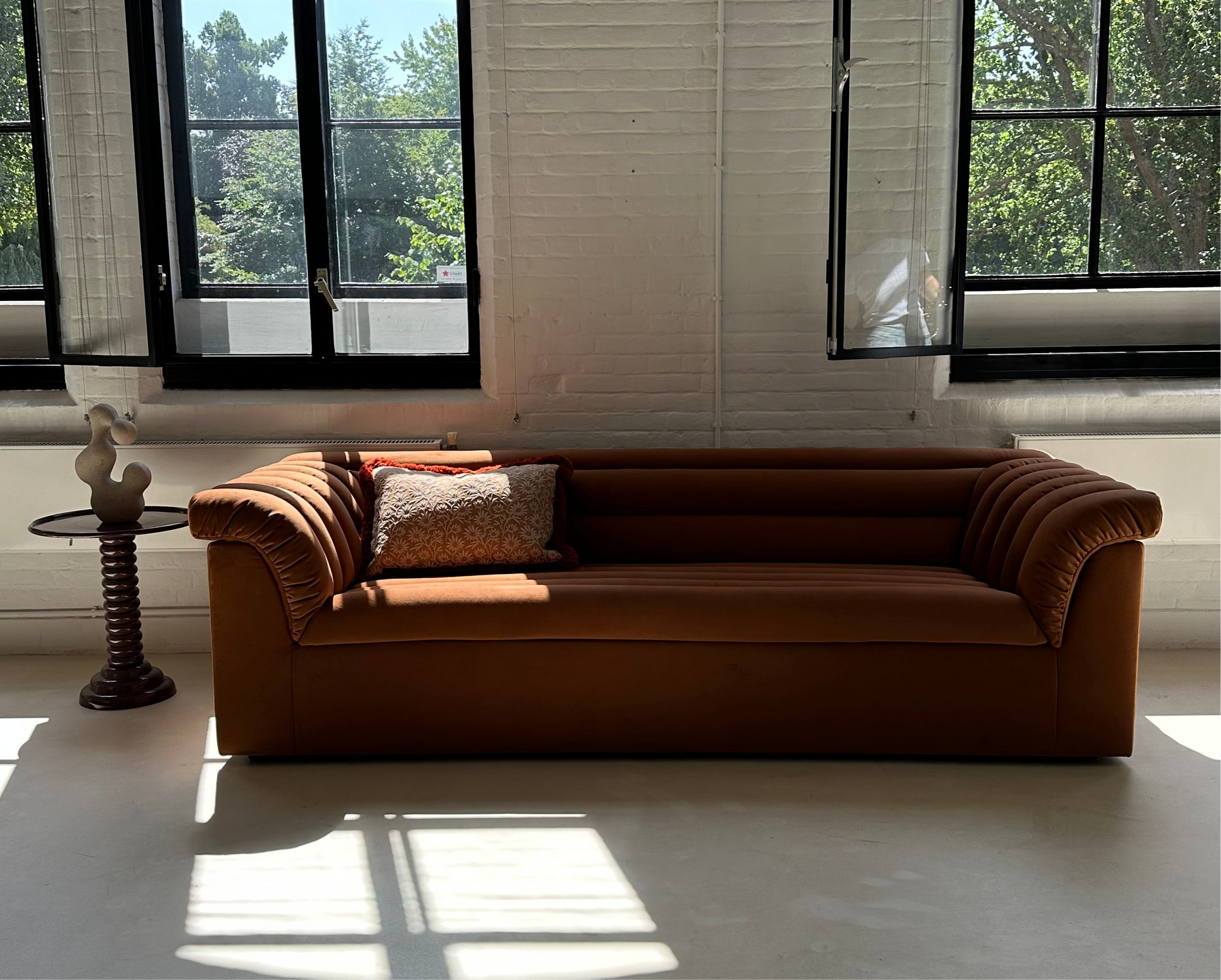 De Elvis bank is een super toffe retro bank in een super zachte bruine velvet stof. De bank heeft een geweldig zachte en comfortabele zitting. Dit showmodel maakt plaats voor een nieuw model van deze bank in een andere stof.