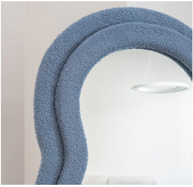 Deze prachtige spiegel met teddy stof zal elk interieur opfleuren. Je kan de spiegel zowel neerzetten als ophangen.