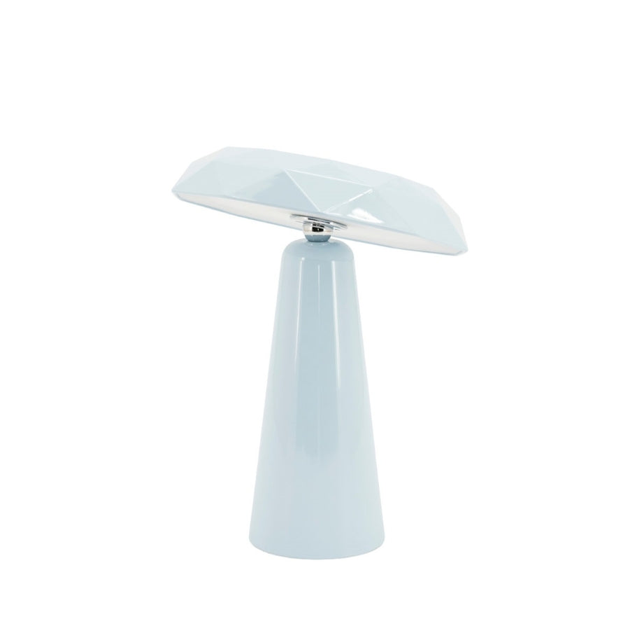 Dit lichtblauwe, oplaadbare tafellampje straalt moderne elegantie uit met een subtiele futuristische twist. De zachte kleur geeft een frisse, serene touch, terwijl het strakke ontwerp zorgt voor een eigentijdse uitstraling.